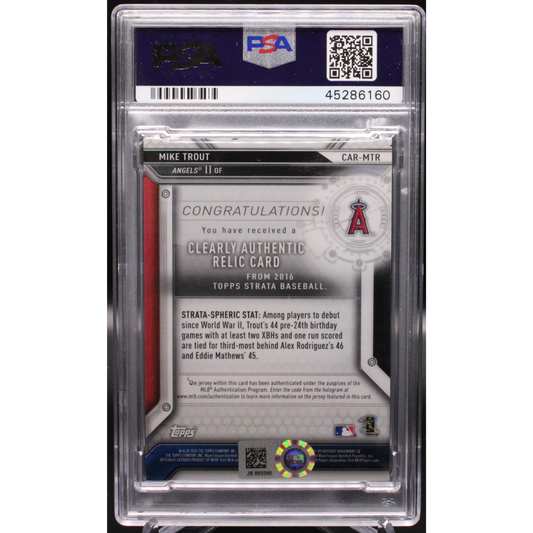 2016 Topps Strata - Mike Trout CAR-MTR - Clearly Authentic Relic Cards - PSA Authentic Auto 10