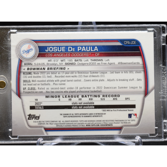 2023 Topps Bowman Chrome - Josue De Paula CPA-JDE - Base Bowman Auto