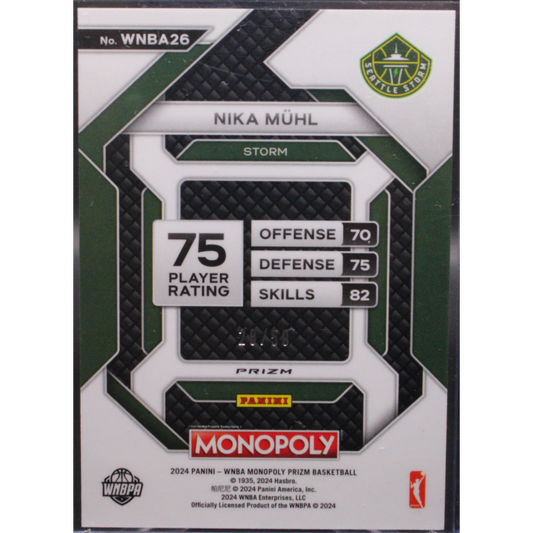 2024 Panini Prizm Monopoly - Nika Muhl WNBA26 - Purple Millionaire Shimmer /50 WNBA Insert