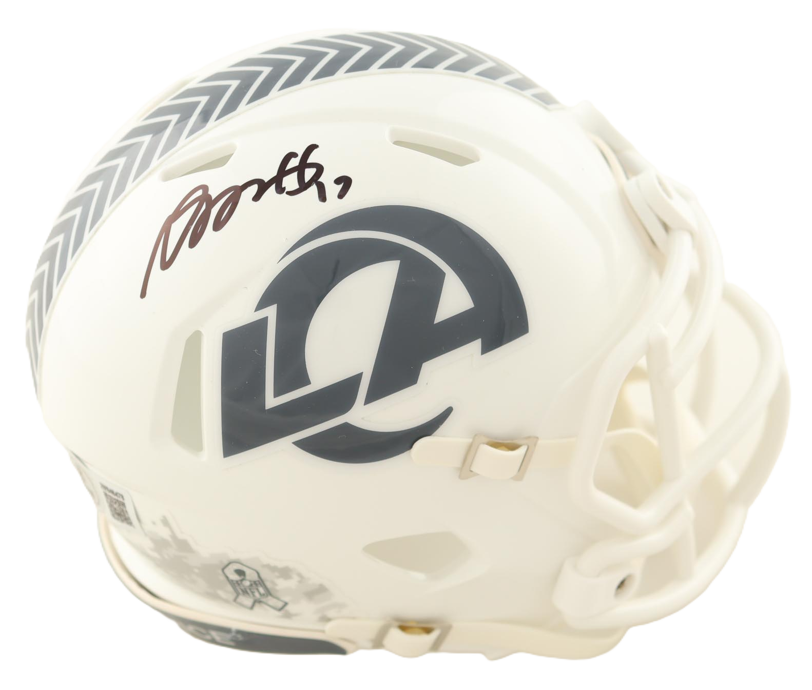 This Salute to Service mini helmet has been personally hand-signed by famed wide receiver Davante Adams of the Los Angeles Rams.