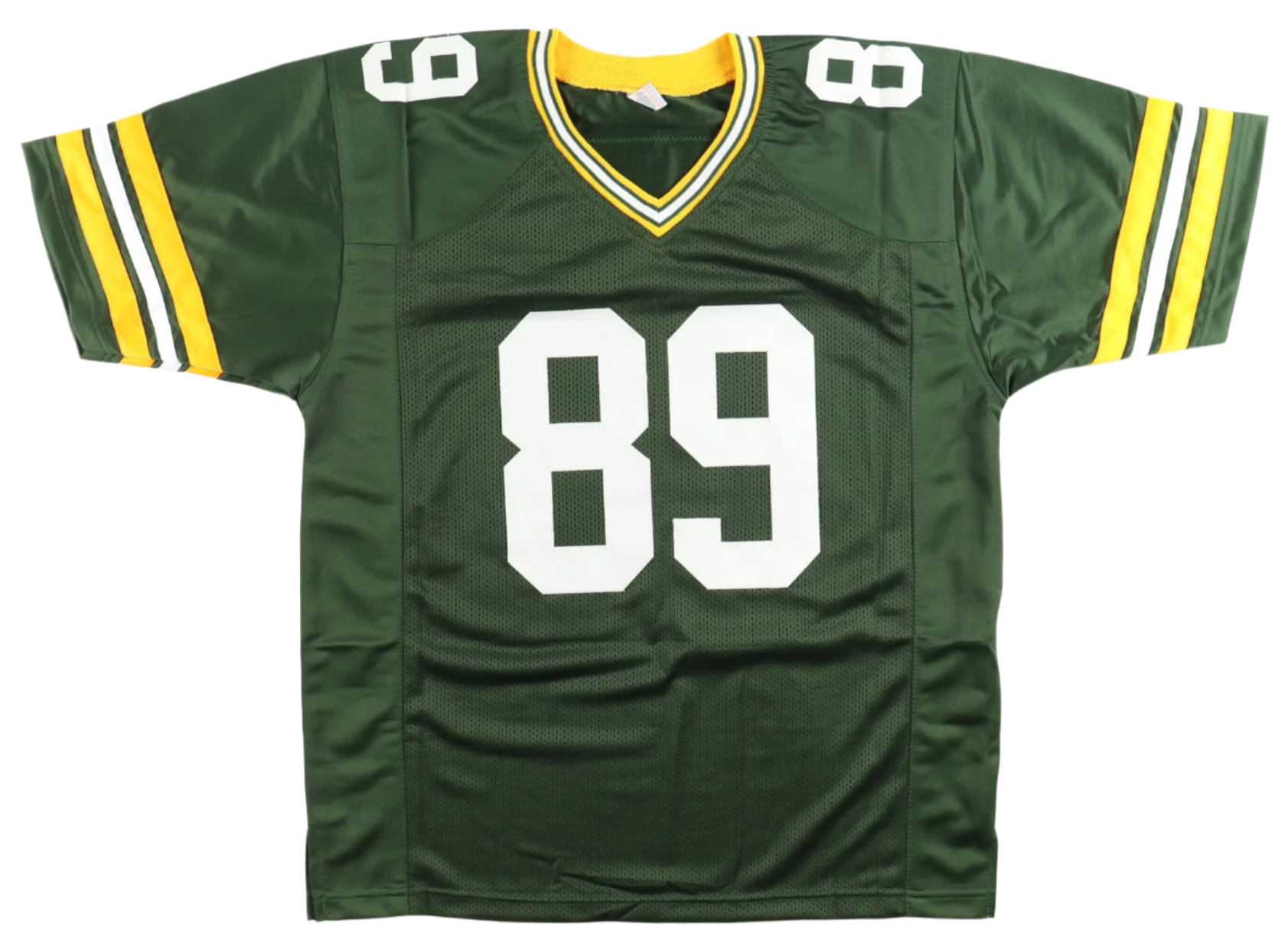 Custom jersey with everything sewn on, size XL. Hand-signed and inscribed by Dave Robinson (HOF 2013).