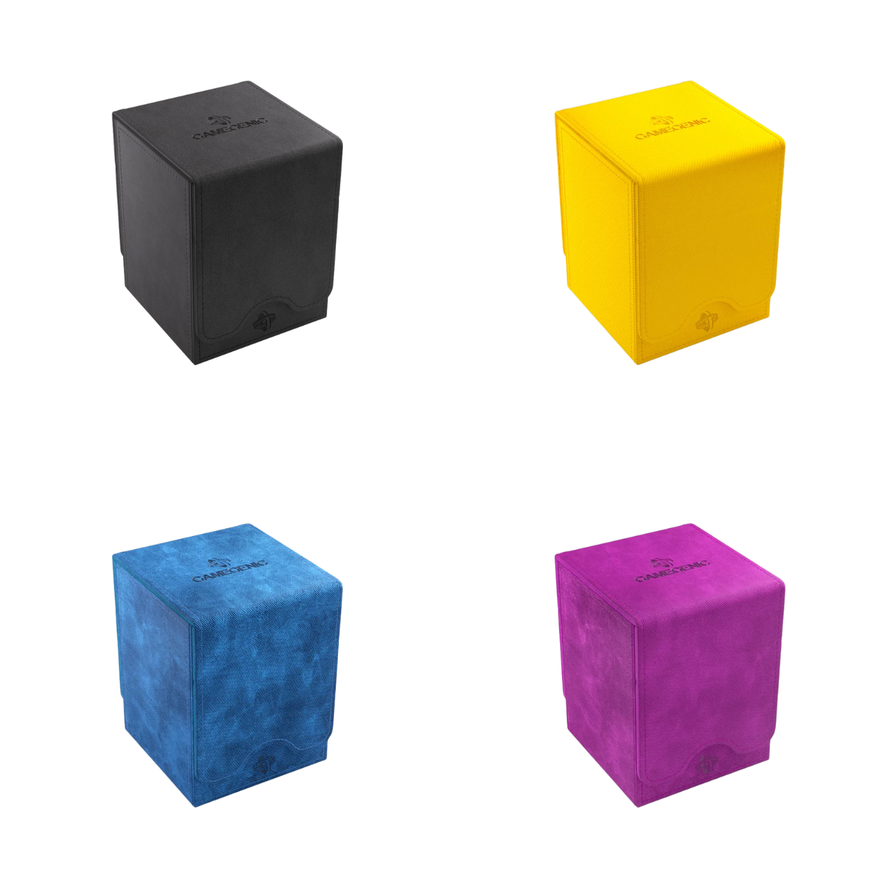 The Squire 100+ was designed in an exclusive extra-large version that holds 100 regular double-sleeved cards and has extra space for additional tokens, or it fits perfectly a Commander** Deck in thicker inner sleeves. The Convertible line is designed to present cards in new and unique ways. Remove the lid, attach it to the bottom or start tilting your box in a wide variety of ways. Powerful magnets keep it safely closed.