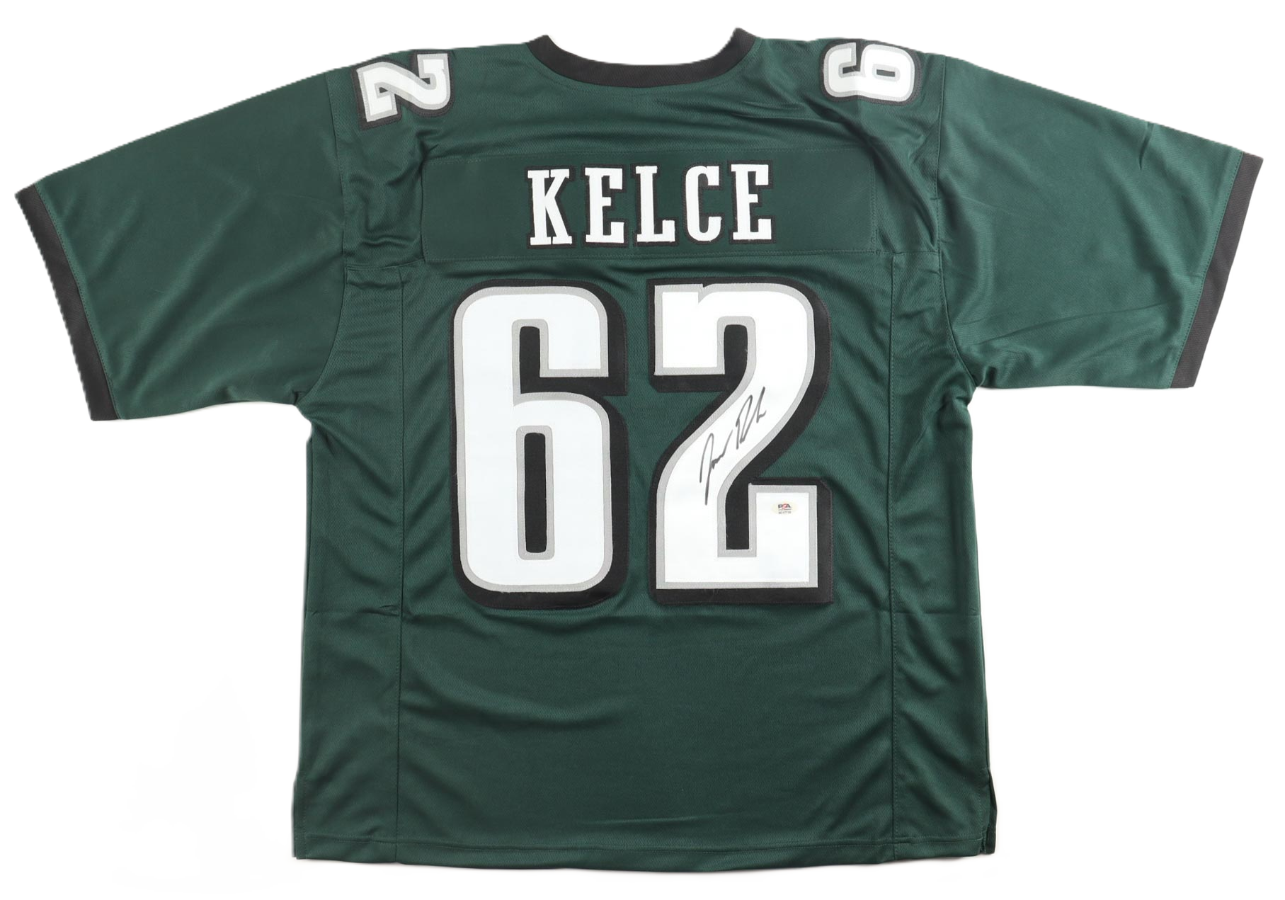 Custom jersey. Everything sewn on, size XL. Hand-signed by retired Eagles Center Jason Kelce.