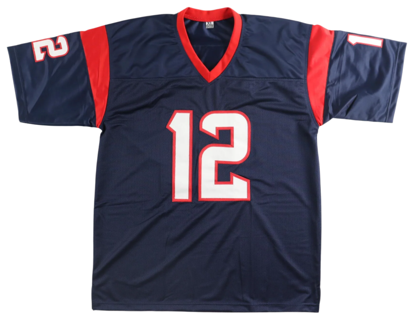 - A professional style blue custom replica football jersey autographed by Nico Collins and authenticated by Beckett